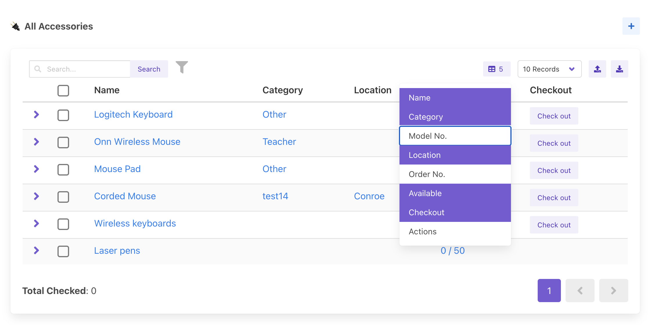 * Click the arrow next to your accessory's name for a quick and easy access to view it's information, who it is assigned to, and the activity history.