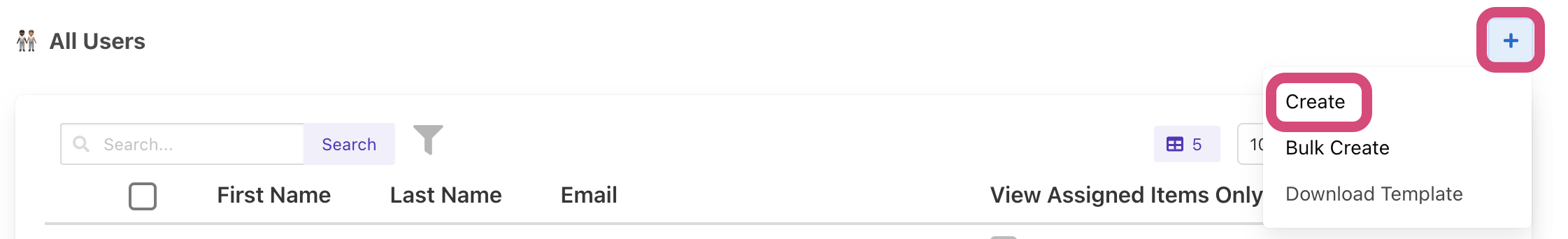 1. Under "Core > People" click on the "+ button" and select "Create".