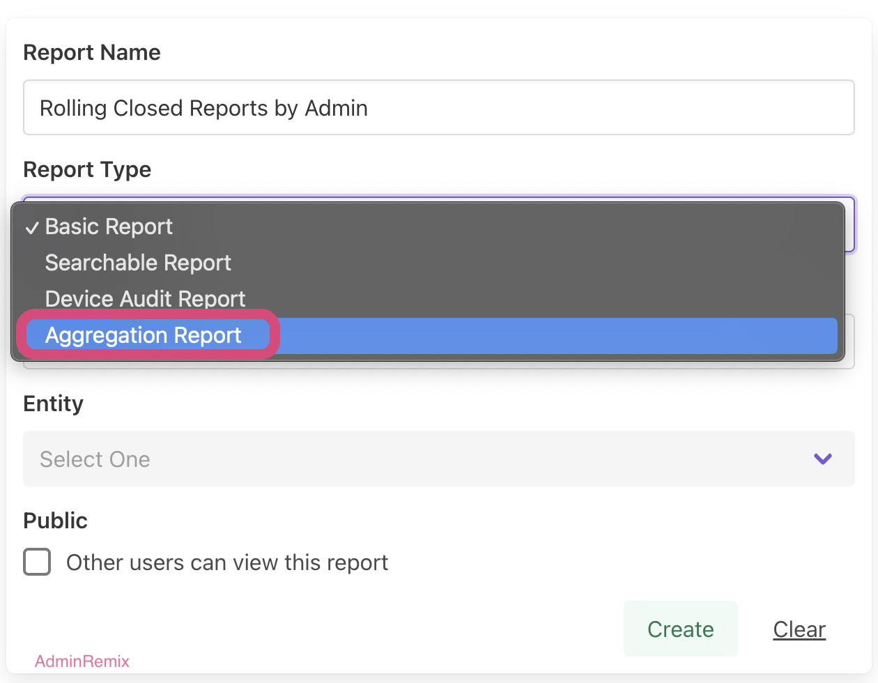 I selected Aggregation Report to help those who would like to do Rolling Reports.