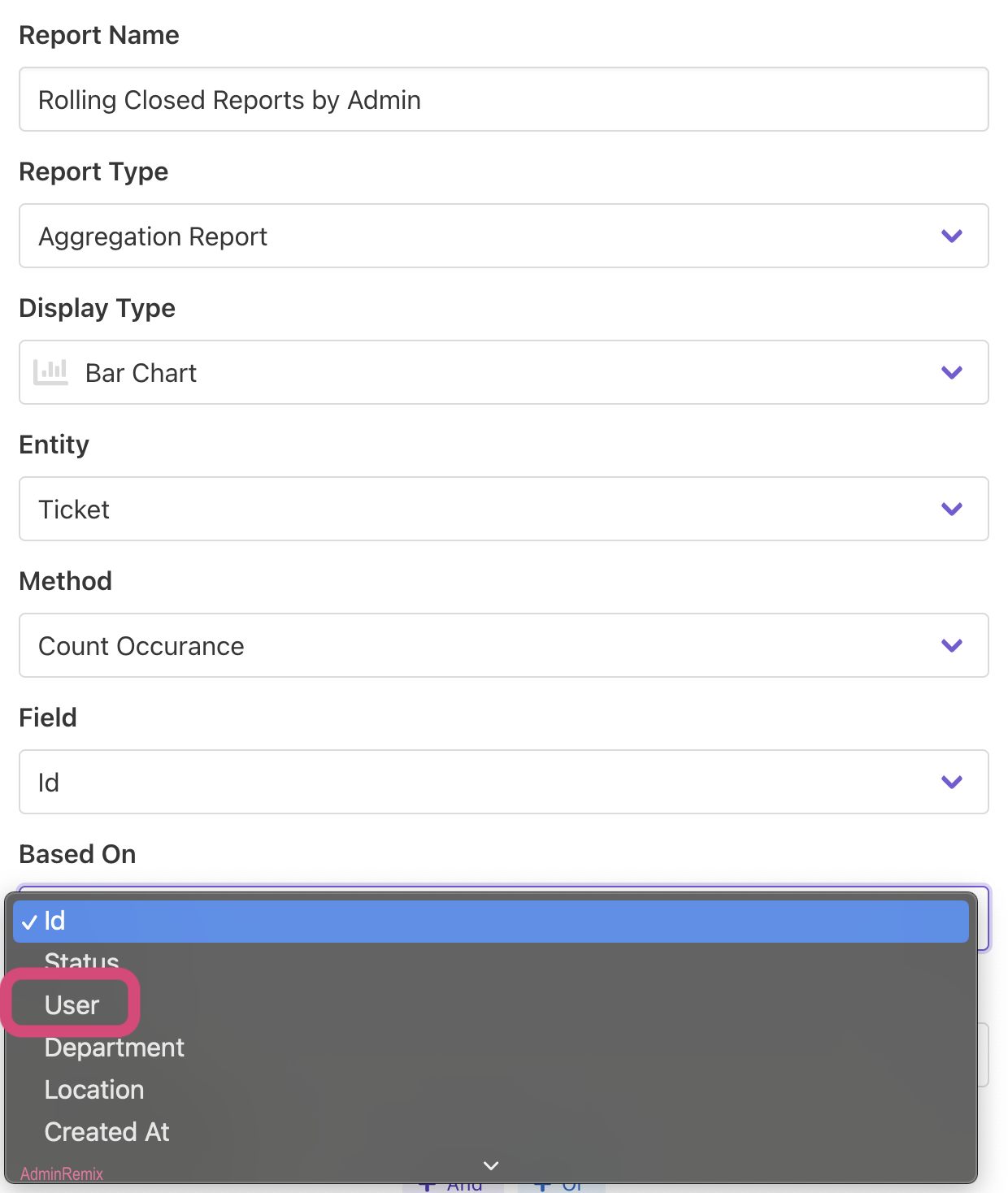 6. Select your "Field". Here I chose "ID", this is what our tickets are based on.